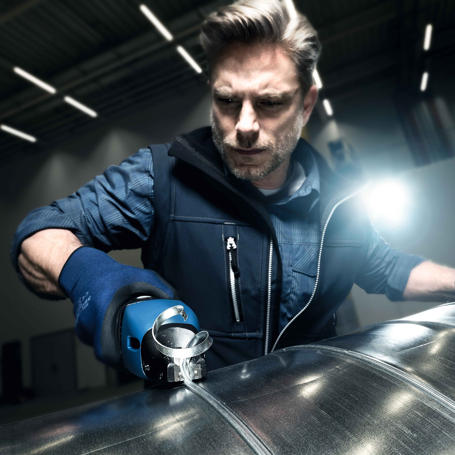 - Kapning av spiralrör. Skär i alla riktningar, även över falsen.